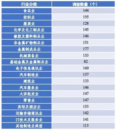 測量方法為隨機分層抽樣調(diào)查法,其中三個層次分別為企業(yè)規(guī)模、企業(yè)門類和(國家層級以下的)區(qū)域分布。