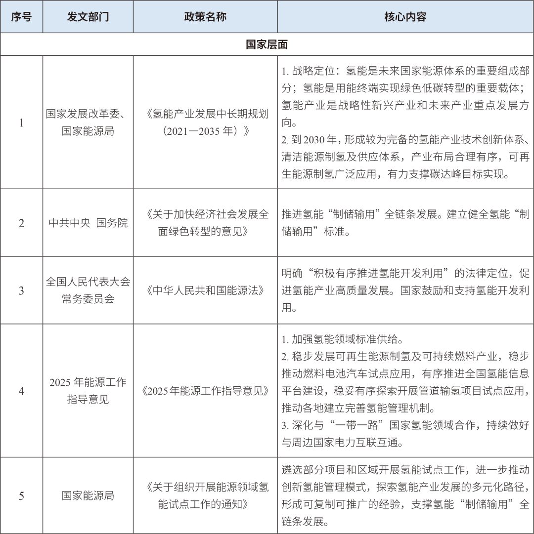 我國對氫能產(chǎn)業(yè)發(fā)展的戰(zhàn)略部署和政策支持體系正在持續(xù)完善,已形成多層次、全方位的產(chǎn)業(yè)促進機制?!稓淠墚a(chǎn)業(yè)發(fā)展中長期規(guī)劃(2021—2035年)》首次從戰(zhàn)略高度明確了氫能的能源屬性和產(chǎn)業(yè)定位。在2024年政府工作報告中,氫能首次以“前沿新興產(chǎn)業(yè)”的定位被納入。2025年1月1日施行的能源法,正式明確了“積極有序推進氫能開發(fā)利用”的法律定位;開始遴選部分項目和區(qū)域開展氫能試點工作,探索氫能產(chǎn)業(yè)發(fā)展的多元化路徑。