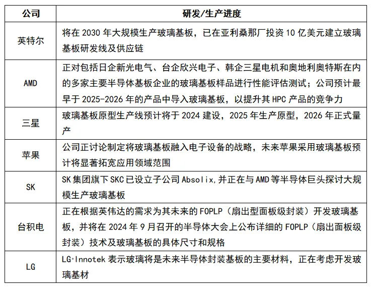 三、國內(nèi)外企業(yè)玻璃基板及玻璃通孔工藝布局情況