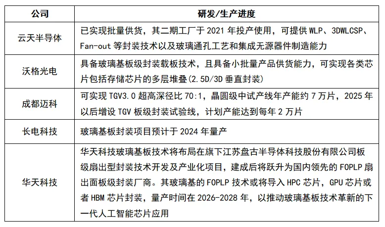 表2 國內(nèi)廠商玻璃基板封裝業(yè)務(wù)布局