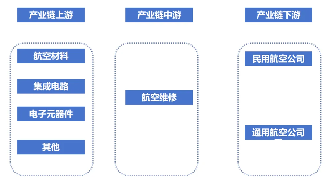 一、航空維修處于航空產(chǎn)業(yè)鏈中游,涉及產(chǎn)品類別眾多,產(chǎn)業(yè)關(guān)聯(lián)效應(yīng)突出