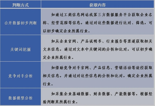 評估系列研究 北國咨從解決政府端需求考慮,以減少企業(yè)負(fù)擔(dān)為出發(fā)點(diǎn),對如何判斷未納統(tǒng)的規(guī)模以下企業(yè)是否屬于制造業(yè)企業(yè)進(jìn)行分析,為行業(yè)管理部門決策、評估提供參考。 規(guī)模以下制造業(yè)企業(yè)的概念 按照國家標(biāo)準(zhǔn)《國民經(jīng)濟(jì)行業(yè)分類》,前兩位行業(yè)代碼為06-46的企業(yè)屬于工業(yè)企業(yè),包括采礦業(yè)、制造業(yè)和電力、燃?xì)饧八纳a(chǎn)供應(yīng)業(yè)等。制造業(yè)企業(yè)則屬于工業(yè)企業(yè)類別中行業(yè)代碼前兩位在13-43的范圍,一般理解指對能源、設(shè)備、物料、工具、技術(shù)、資金、人力和信息等按照市場要求,通過制造過程,轉(zhuǎn)化為可供人們使用和利用的大型工具、工業(yè)品與生活消費(fèi)產(chǎn)品的行業(yè),其產(chǎn)品具備有形產(chǎn)品、產(chǎn)品可以庫存、質(zhì)量可以直接衡量、銷售與生產(chǎn)分離等顯著特點(diǎn)。 現(xiàn)階段我國統(tǒng)計(jì)工作實(shí)踐中,對達(dá)到一定規(guī)模、資質(zhì)或限額的法人單位習(xí)慣性稱為“四上”企業(yè),其中規(guī)模以上工業(yè)企業(yè)為年主營業(yè)務(wù)收入2000萬元及以上的工業(yè)法人單位;未達(dá)到以上標(biāo)準(zhǔn)的工業(yè)法人單位視為規(guī)模以下工業(yè)企業(yè),未達(dá)到以上標(biāo)準(zhǔn)的制造業(yè)法人單位視為規(guī)模以下制造業(yè)企業(yè)。 基于實(shí)踐的判斷方法 對于規(guī)模以下企業(yè)是否屬于制造業(yè)企業(yè)一般基于企業(yè)數(shù)據(jù),并通過綜合手段可較為全面地進(jìn)行分析,從而得到可信精準(zhǔn)的判斷結(jié)果(如圖所示)。