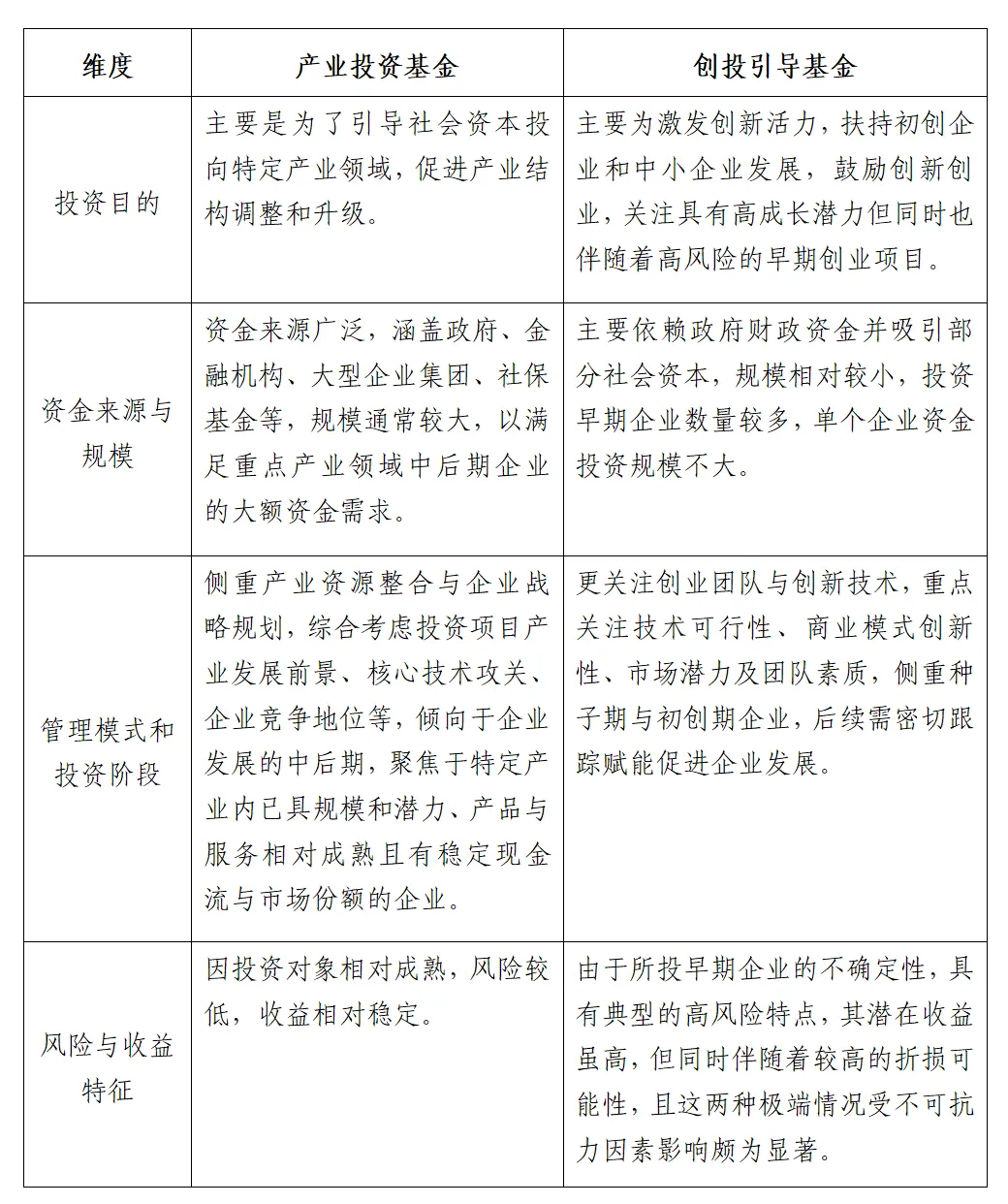 表1 產業(yè)投資基金和創(chuàng)投引導基金主要差異對比