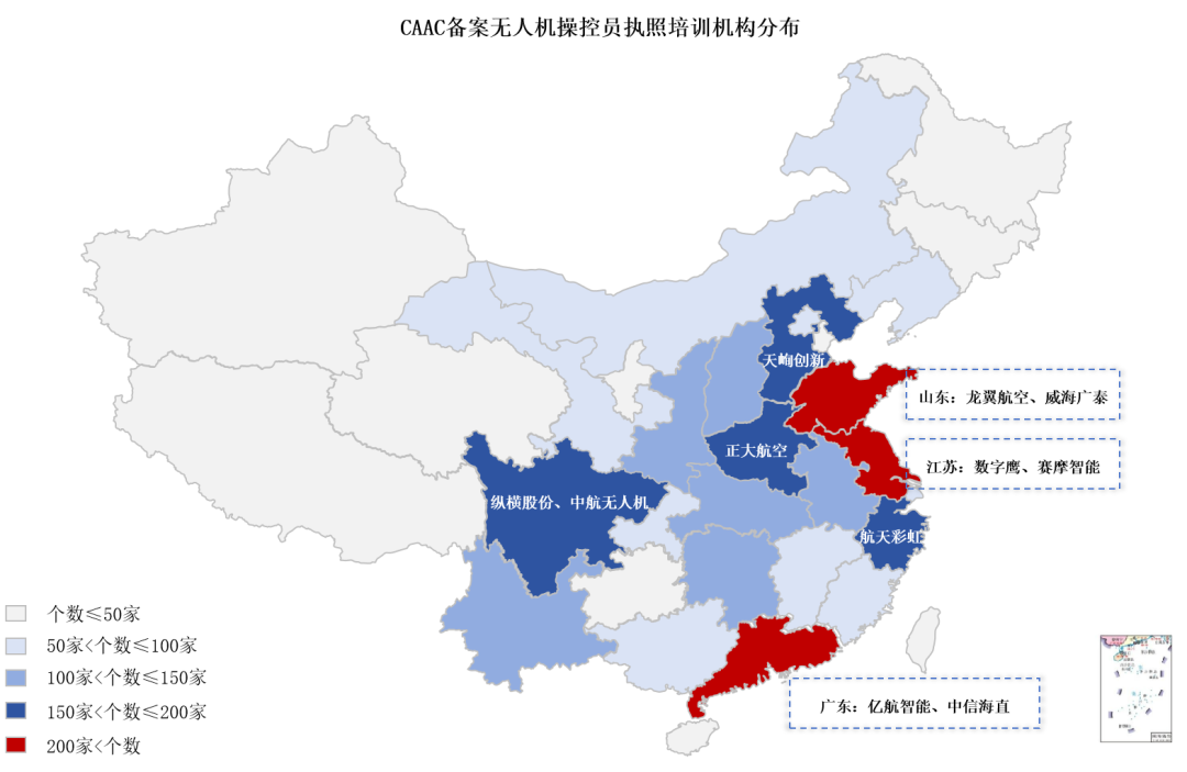 圖3 我國CAAC備案的無人機(jī)培訓(xùn)機(jī)構(gòu)分布情況