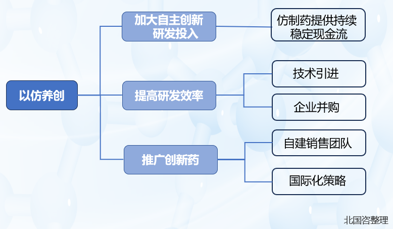 卷首語: 醫(yī)藥健康是全球新一輪科技產(chǎn)業(yè)變革中最為密集、投資最為活躍的領(lǐng)域,具備“高風(fēng)險(xiǎn)、高投入、高回報(bào)、長周期”的典型特征,10年研發(fā)周期、10億美元投入、低于10%的成功率成為原創(chuàng)重磅級產(chǎn)品創(chuàng)新的行業(yè)共識。 21世紀(jì)之前,中國以化學(xué)藥為主的醫(yī)藥制造業(yè)基礎(chǔ)薄弱,基本依靠仿制藥發(fā)展,90年代數(shù)家國內(nèi)藥企依托首仿藥成長成為本土龍頭企業(yè)。2000年以來,在國家戰(zhàn)略布局、重大新藥創(chuàng)制專項(xiàng)等促進(jìn)下,在政策、資本、人才等多因素共同驅(qū)動下,我國生物醫(yī)藥自主創(chuàng)新進(jìn)程加快,創(chuàng)新層次從派生藥(Me-too)、改進(jìn)藥(Me-better)向原研首創(chuàng)藥(Me-first)攀升,尤其是近年來,審評審批改革、上市許可持有人制度(MAH)等拉動創(chuàng)新型藥品醫(yī)療器械臨床和上市提速,仿制藥一致性評價(jià)和醫(yī)保改革倒逼加大創(chuàng)新投入,CXO賦能進(jìn)一步加速創(chuàng)新研發(fā)進(jìn)程,醫(yī)藥領(lǐng)域創(chuàng)新不斷蓄力、加快轉(zhuǎn)化為發(fā)展新動能。 本研究通過對國內(nèi)外典型藥企創(chuàng)新產(chǎn)品研發(fā)模式進(jìn)行案例分析,歸納梳理了“以仿養(yǎng)創(chuàng)”的轉(zhuǎn)型升級之路、巨頭企業(yè)的融合發(fā)展之路、從Biotech到Biopharma的自我成長之路、License in/out的借力起飛之路共四類模式(分四期連載),以期在全球醫(yī)藥健康科技和產(chǎn)業(yè)激烈的競爭浪潮中,為尋找中國創(chuàng)新藥企業(yè)加速騰飛的錨點(diǎn)提供參考借鑒。本期請關(guān)注:“以仿養(yǎng)創(chuàng)”的轉(zhuǎn)型升級之路。 第一期 “以仿養(yǎng)創(chuàng)”的轉(zhuǎn)型升級之路 “以仿養(yǎng)創(chuàng)”是指仿制藥企業(yè)通過仿制藥打開市場,依托仿制藥端持續(xù)、穩(wěn)定的現(xiàn)金流,為高投入、長周期的創(chuàng)新藥研發(fā)不斷造血,經(jīng)歷了仿制藥研發(fā)、仿創(chuàng)結(jié)合、自主創(chuàng)新的發(fā)展路徑,最終實(shí)現(xiàn)創(chuàng)新藥成功上市,幫助企業(yè)完成轉(zhuǎn)型。卷首語: 一、恒瑞醫(yī)藥 (一)基本信息 恒瑞醫(yī)藥成立于1970年,是當(dāng)前中國醫(yī)藥行業(yè)最具有綜合實(shí)力的龍頭企業(yè),其通過“以仿養(yǎng)創(chuàng)”模式,已成為國產(chǎn)創(chuàng)新藥Big Pharma,國際影響力突出。在PharmExec(美國制藥經(jīng)理人雜志)公布的2022年全球制藥企業(yè)TOP50榜單中,恒瑞位居第32名,是中國唯一進(jìn)入前35名的企業(yè)?,F(xiàn)市值達(dá)3000億元,穩(wěn)坐A股上市藥企第一寶座。恒瑞產(chǎn)品聚焦于三個(gè)主營板塊(抗腫瘤藥物,麻醉鎮(zhèn)痛和造影劑),在國內(nèi)業(yè)務(wù)市場均占有領(lǐng)先位置。根據(jù)PDB數(shù)據(jù)庫,抗腫瘤藥物方面,2021年恒瑞在國內(nèi)醫(yī)院的市占率達(dá)到5.72%,位列第二,第一為羅氏(10.74%)。 作為“以仿養(yǎng)創(chuàng)”的國內(nèi)典型企業(yè),恒瑞在1990s布局首仿藥,率先仿制國外專利藥。如恒瑞是國內(nèi)第一家仿制多西他賽(賽諾菲-安萬特)的企業(yè),并于2002年9月30日獲得上市批文。此后十年磨一劍,于2011年上市了其第一款創(chuàng)新藥艾瑞昔布,打破了鎮(zhèn)痛領(lǐng)域長期被國際醫(yī)藥巨頭壟斷的尷尬現(xiàn)實(shí)。 近年來,恒瑞的創(chuàng)新藥進(jìn)入收獲期。截至2023年7月,恒瑞醫(yī)藥共上市13款創(chuàng)新藥,其中11款近五年獲批。且創(chuàng)新藥業(yè)務(wù)占比逐年上升,2022年創(chuàng)新藥貢獻(xiàn)了恒瑞營收的38.15%,恒瑞距離完成從仿制藥企業(yè)向創(chuàng)新藥企業(yè)(創(chuàng)新藥收入占比超過50%)的蛻變指日可待。 (二)發(fā)展歷程 (三)特點(diǎn)總結(jié) 意識先行,先行業(yè)而動。恒瑞1990年從基礎(chǔ)原料藥向仿制藥轉(zhuǎn)型,之后開始布局創(chuàng)新藥,從“仿制藥生產(chǎn)”到“仿創(chuàng)結(jié)合”,再到現(xiàn)在的“創(chuàng)新驅(qū)動”,恒瑞每一次改革都趕在行業(yè)變遷的前面,牢牢把握住醫(yī)藥行業(yè)的發(fā)展規(guī)律。 一以貫之,重視創(chuàng)新研發(fā)。恒瑞在2022年業(yè)績下滑,但其研發(fā)強(qiáng)度依舊提升至29.83%,已反超全球研發(fā)投入最多的10大藥企(平均研發(fā)強(qiáng)度19%),并遠(yuǎn)高于我國A股生物醫(yī)藥公司(平均研發(fā)強(qiáng)度4.6%)。高強(qiáng)度的研發(fā)投入也讓恒瑞以13款創(chuàng)新藥位列國內(nèi)藥企第一。 “大國”視野,推進(jìn)國際化進(jìn)程。恒瑞積極拓展海外市場,早在2009年,恒瑞的磷酸瑞格列汀臨床研究就進(jìn)行了中美雙報(bào),并獲得了批準(zhǔn)。近些年,恒瑞陸續(xù)將卡瑞利珠單抗、吡咯替尼、SHR-1701等授權(quán)出讓給國際知名藥企,推動恒瑞醫(yī)藥走向國際。去年5月,恒瑞醫(yī)藥成立了全資子公司Luzsana Biotechnology,負(fù)責(zé)恒瑞醫(yī)藥管線產(chǎn)品的國際化。 行而不輟,靜待花開。創(chuàng)新藥的研發(fā)投入高、周期長、風(fēng)險(xiǎn)高,巨大的研發(fā)成本使得許多藥企望而卻步,但是恒瑞沒有放棄,在經(jīng)歷許多研發(fā)失敗的情況下,亦堅(jiān)持不懈,耐得住寂寞,直到研發(fā)創(chuàng)新藥成功為止。目前恒瑞有240多項(xiàng)臨床試驗(yàn)在國內(nèi)外開展,建立了梯隊(d