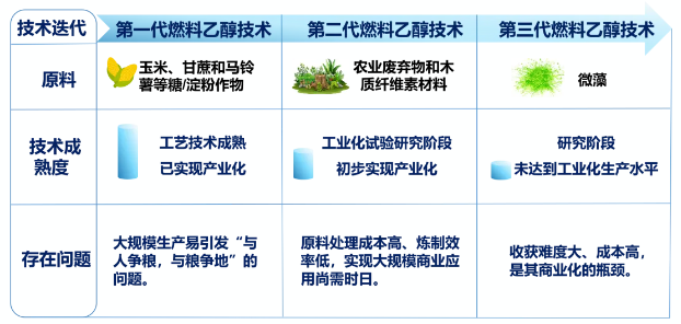 圖1 三代生物燃料乙醇技術(shù)對比