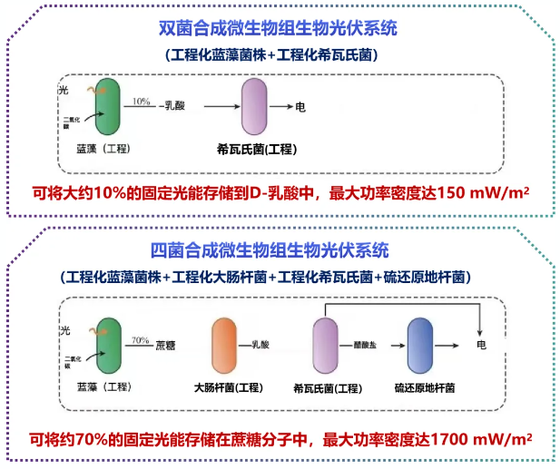 圖4 雙菌、四菌合成微生物組生物光伏系統(tǒng)對比