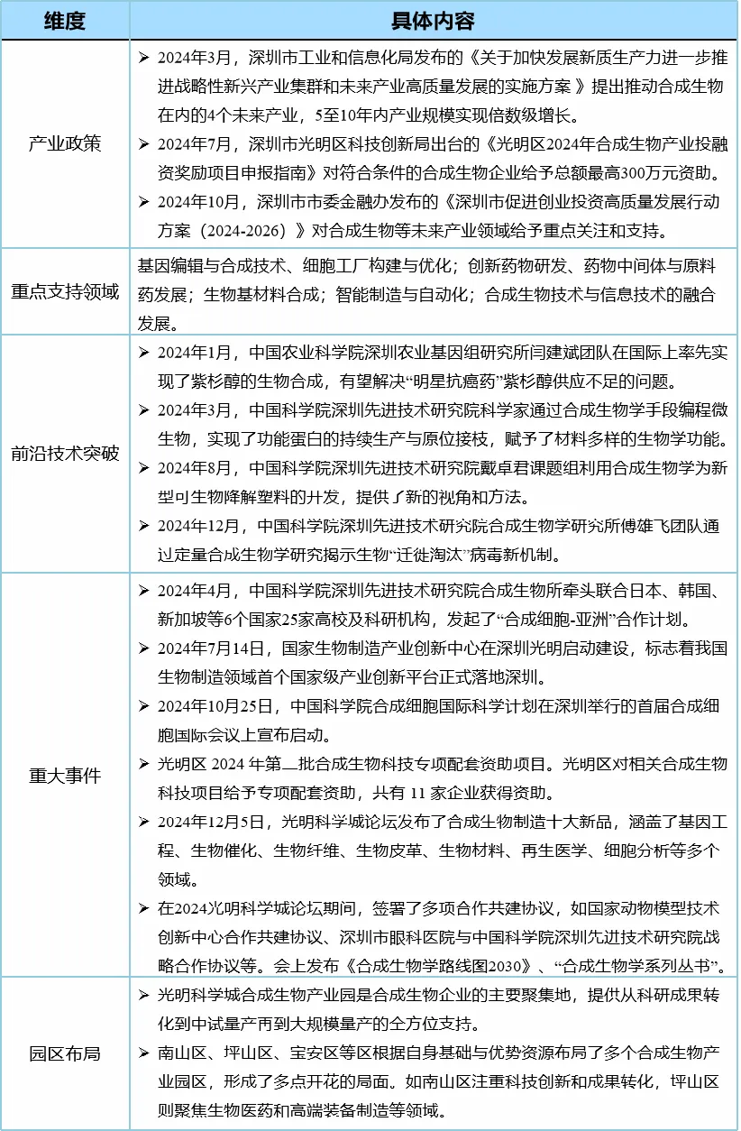 表4 深圳市合成生物最新發(fā)展態(tài)勢