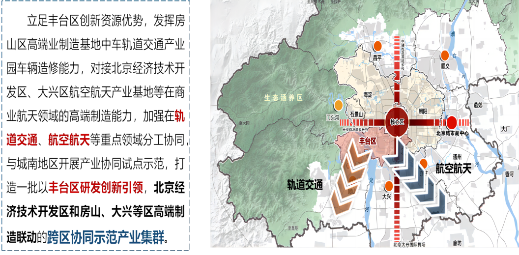 規(guī)劃梳理總結(jié)豐臺(tái)區(qū)高精尖產(chǎn)業(yè)現(xiàn)狀和形勢(shì),根據(jù)豐臺(tái)區(qū)既屬“一主”,又處“一軸”沿線,是“四個(gè)中心”功能的集中承載地區(qū)以及促進(jìn)豐臺(tái)科技創(chuàng)新和金融服務(wù)的融合發(fā)展區(qū)功能定位,提出構(gòu)建“2231”高精尖產(chǎn)業(yè)結(jié)構(gòu),加快成為首都發(fā)展的新空間、科技創(chuàng)新的主引擎和創(chuàng)新型總部經(jīng)濟(jì)聚集區(qū)的規(guī)劃思路和相應(yīng)舉措。